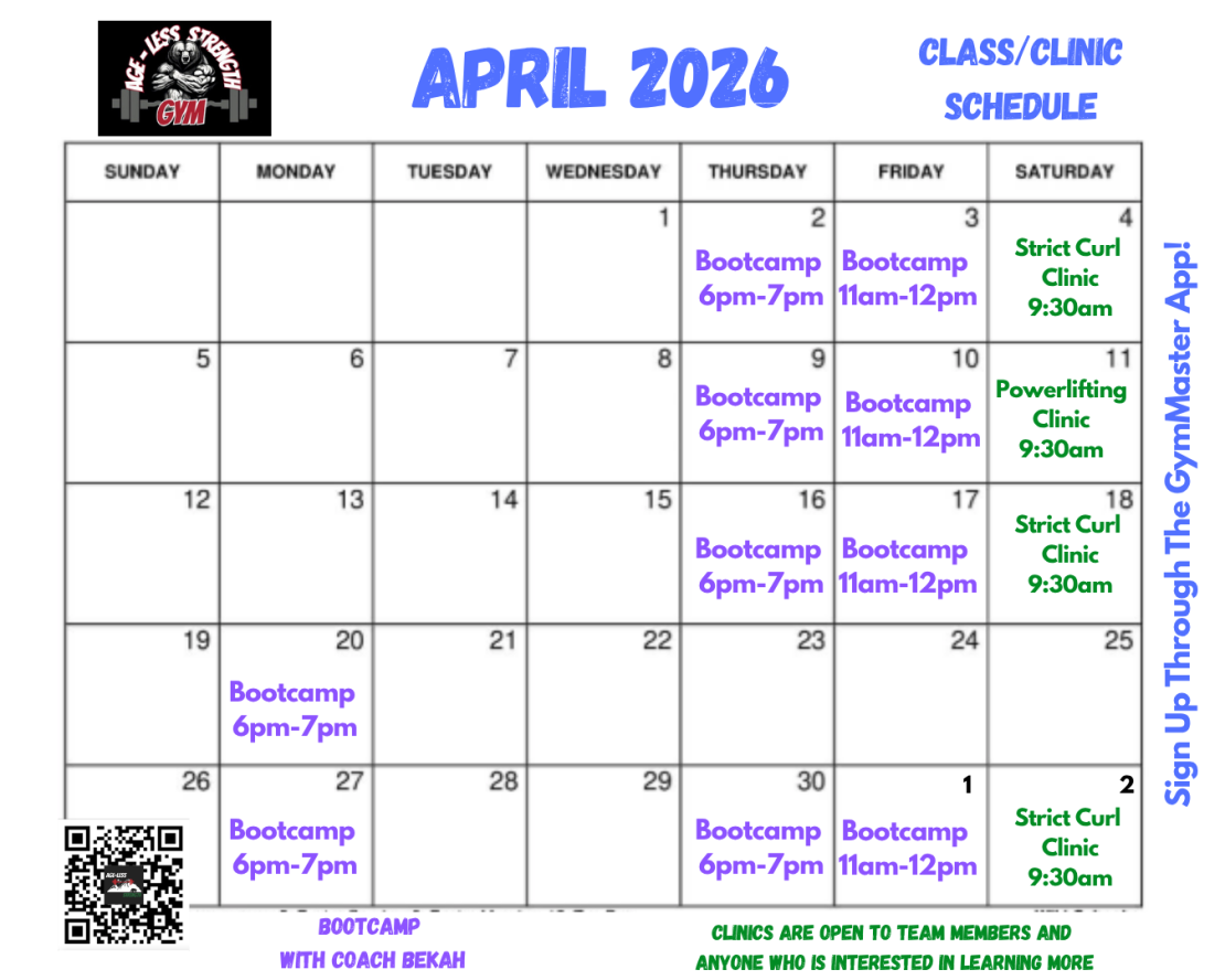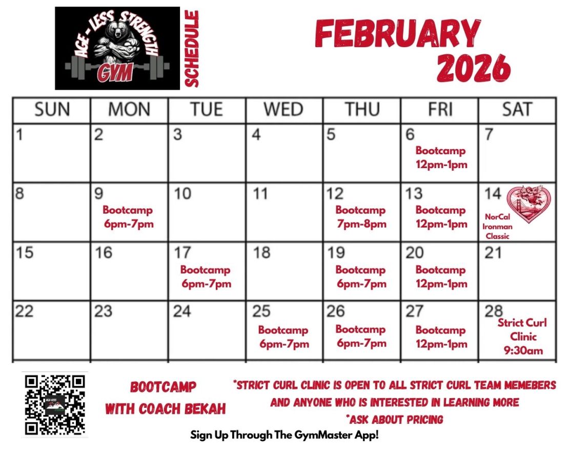Welcome to Age-Less Strength, the premier strength training gym in Santa Clara, serving the South Bay Area, Silicon Valley, and San Jose. Whether you're a beginner or a competitive powerlifter, bodybuilder, or athlete, our Bay Area strength gym is fully equipped for your fitness journey. We offer gym memberships, drop-in passes, and personal training in Santa Clara customized to your goals. Our facility boasts elite equipment from Rogue, NAS Power, Titan, Ivanko, and Gopher, ideal for powerlifting, strict curl, weightlifting, bodybuilding, and functional strength workouts. Our certified personal trainers specialize in powerlifting coaching, fitness and nutrition, injury prevention and group classes. If you're searching for a powerlifting gym, personal training, or strength gym in Silicon Valley, Age-Less Strength is your destination. We welcome all ages and skill levels to join our fitness community. At Age-Less Strength, strength isn’t defined by age, but it’s built on dedication, character, and community. Visit us, take a class, or start your personalized training program today at one of the best strength gyms in the Bay Area.